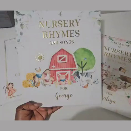 Our Personalised Nursery Rhymes Book is a luxe hardback keepsake featuring a shimmering gold foil cover and your child’s name printed on the front and woven throughout the book.