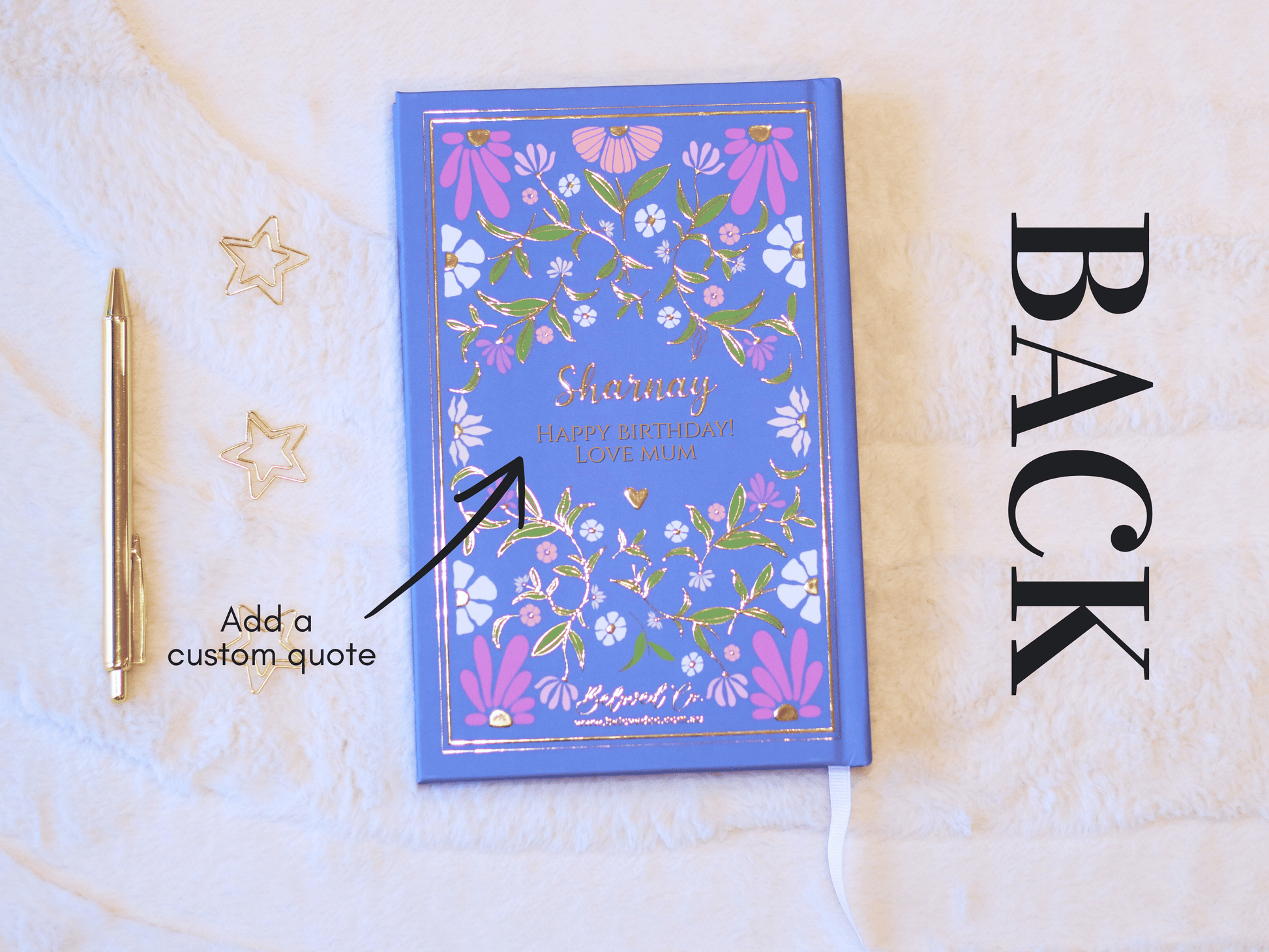3. Then personalise your gold-foiled hardback cover with a name, special date, fun title or favourite quote.